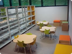 Foi criada uma zona para alunos da pré–primária com mobiliário ajustado à sua faixa etária.
