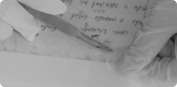 Em documentos em mau estado de conservação efetuamos consolidações em folhas rasgadas e/ou furadas, integração pictórica para uniformizar a cor, especialmente em novas zonas de papel integradas no documento original e efetuamos correção de nível de acidez, mas só após realizarmos testes e medições. Como esses testes e medições envolvem tempo e material são alvo de orçamento e só após a sua aprovação é que intervimos.